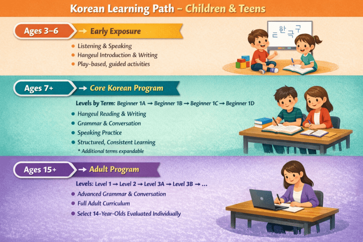 - 🎓 12 Levels of Korean Courses — From Beginner Korean I to Proficient Korean II